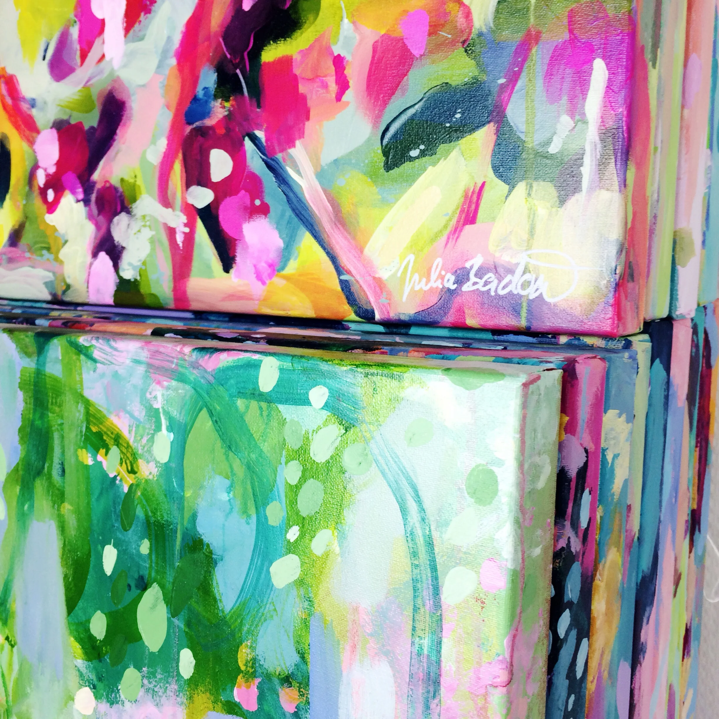 "Julia's art is a burst of pleasure and delight. The colors dance across the canvas as if revealing a map to a magical land where your soul is free to fly where it desires. I love looking at my painting to remind me of my soul's true desires." –Laüra H., Artist, Creator of Soul Art®